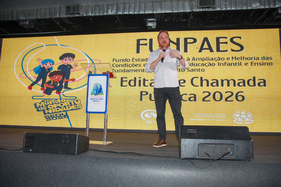 O governador do Estado, Renato Casagrande, e o vice-governador Ricardo Ferraço anunciaram, no 9º Congresso Gestão das Cidades, um conjunto de investimentos superiores a R$ 300 milhões voltados à região do Rio Doce, lançaram o edital do Fundo Estadual de Apoio à Ampliação e Melhoria das Condições de Oferta da Educação Infantil e do Ensino Fundamental (Funpaes) 2026 e oficializaram a próxima edição da Feira dos Municípios.
